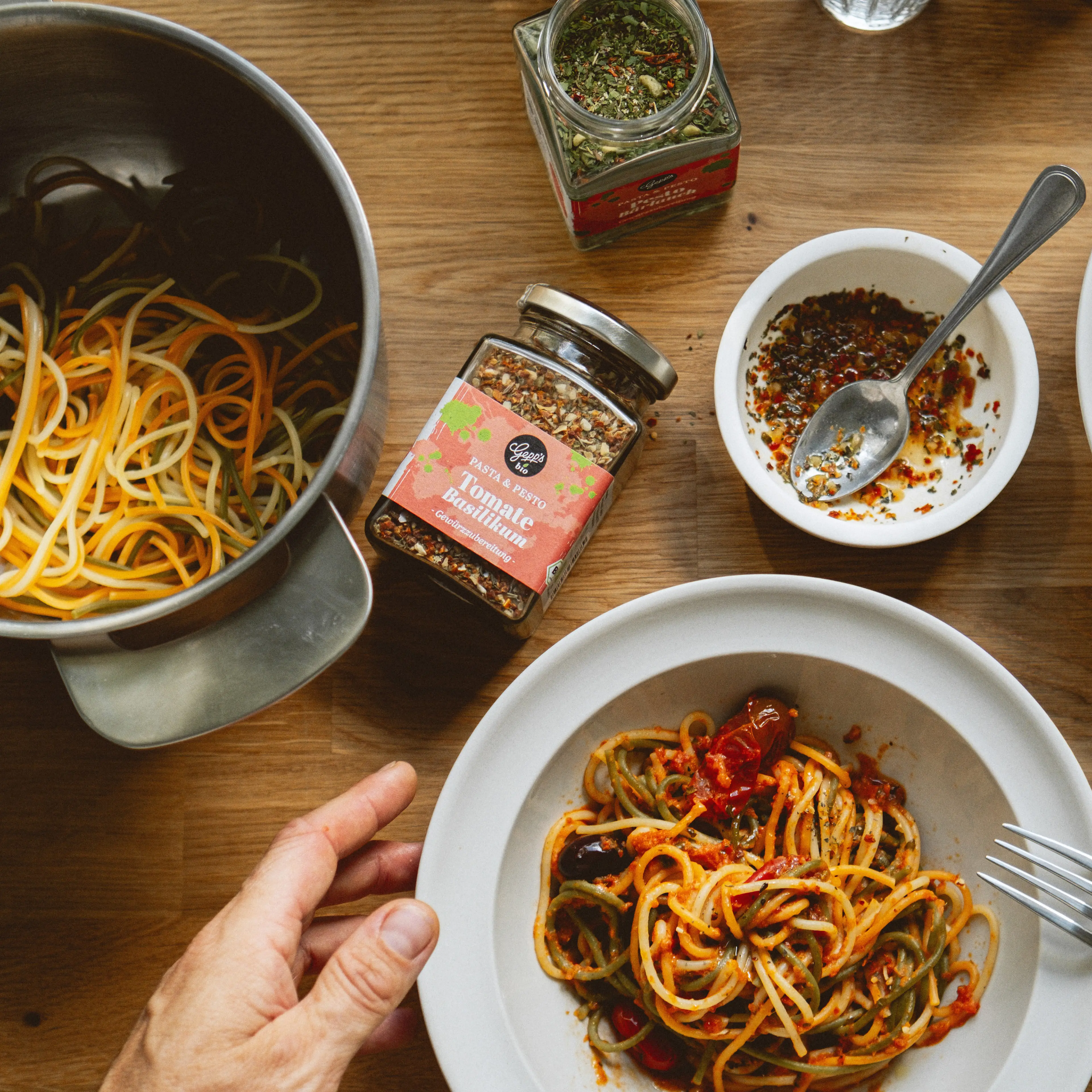 Der Geschmack Italiens in einer unübertroffenen Mischung: Für unser original italienisches Pastagewürz verwenden wir Tomaten, Zwiebeln, Knoblauch, Basilikum, Paprika, ein Auswahl an aromatischen Kräutern, Pfeffer und Chilis. Mit warmem Wasser und etwas Olivenöl anrühren, dann einfach die Pasta unterheben. Aber auch zum Würzen von Burgern und zum Verfeinern von Salaten geradezu genial.