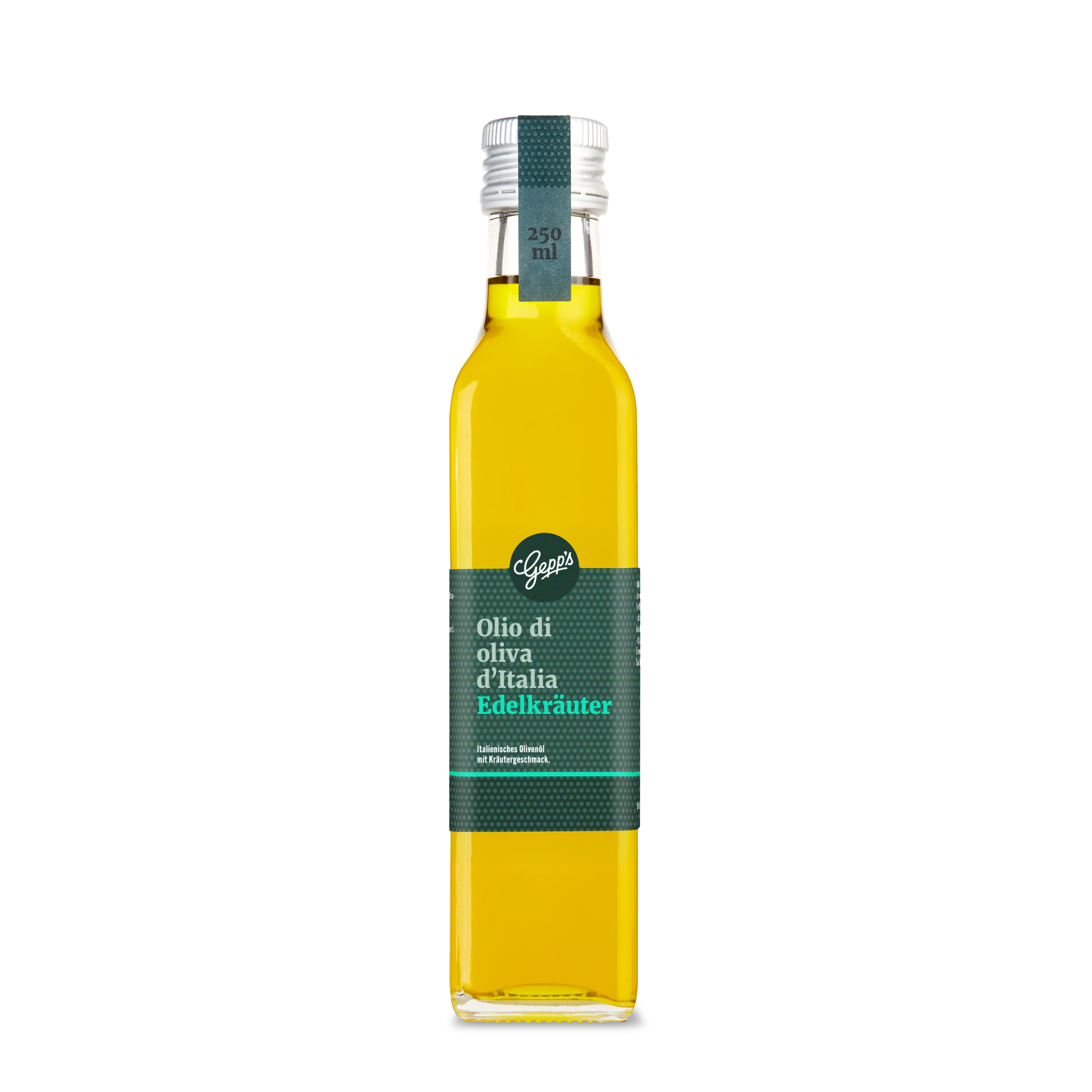 Kaltgepresstes natives Olivenöl extra (ausschließlich mechanisch gewonnen) aus Italien 98 %, natürliches Aroma 2 % (Thymian, Rosmarin, Salbei, schwarzer Pfeffer).
