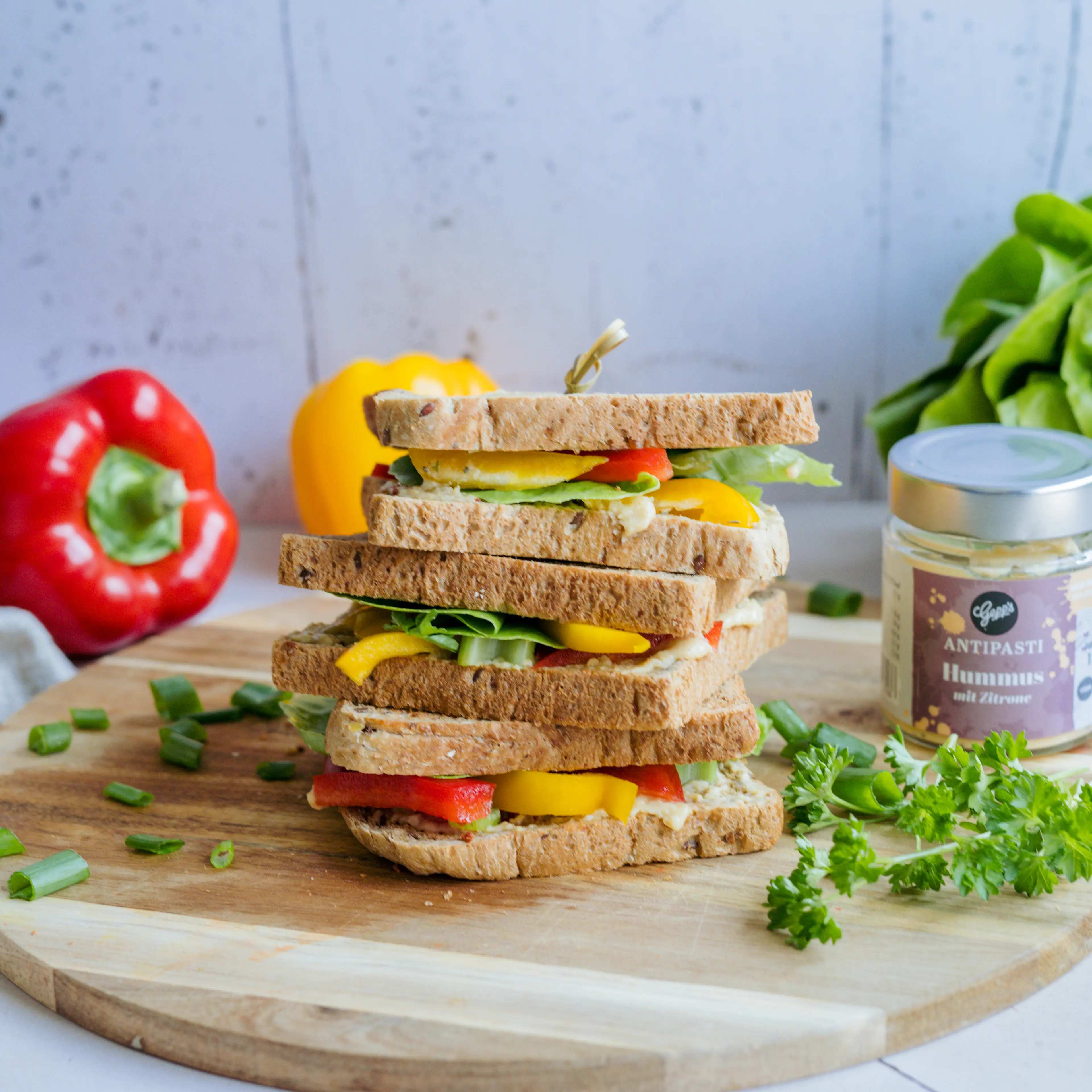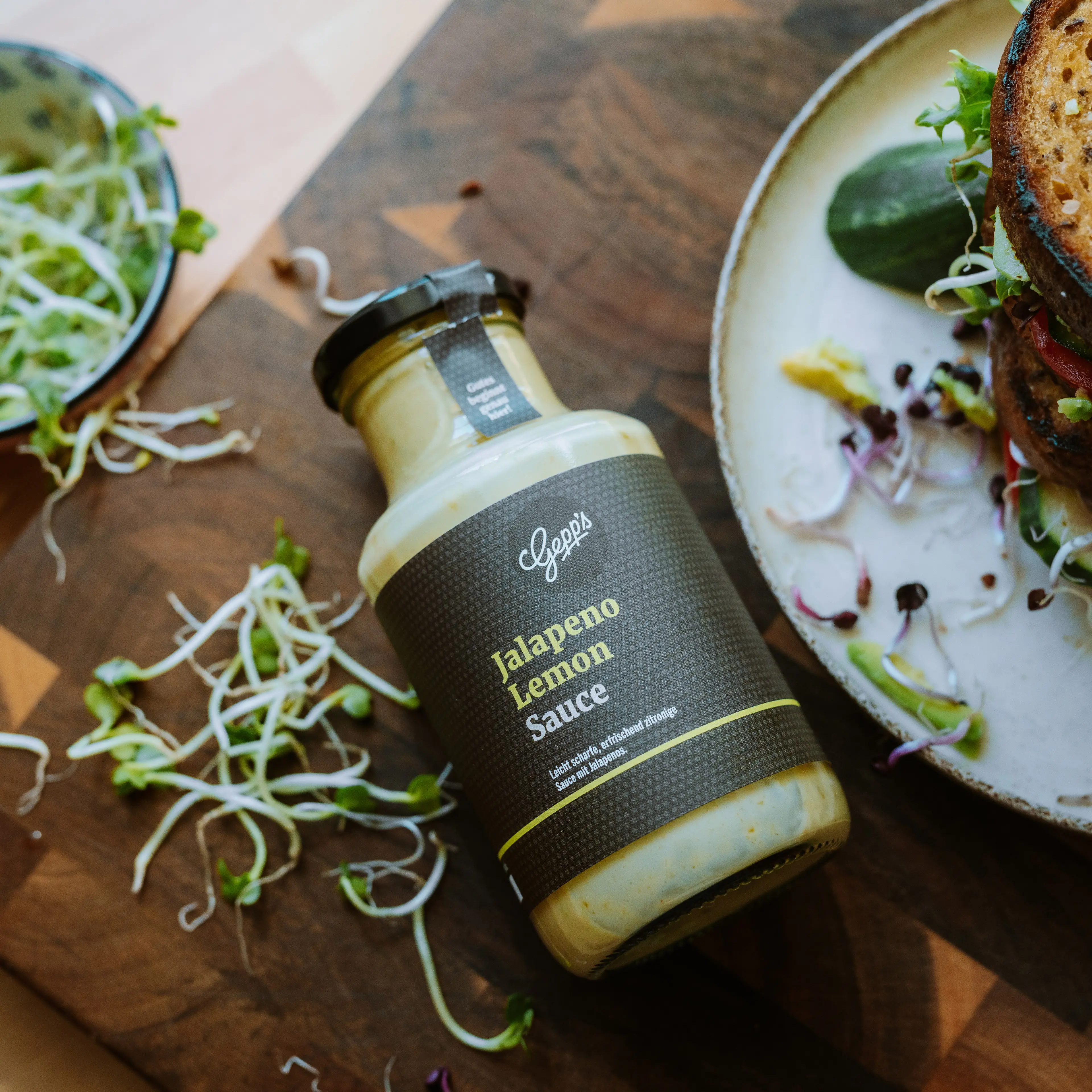 Blaubeer Zimt Sauce (250 ml), Bio Tellicherry Pfeffer (45 g), Manzanilla Oliven mit Orange (280 g), Kala Namak Salz, Hummus mit Zitrone (135 g), Grillbrot Backmischung (500 g)