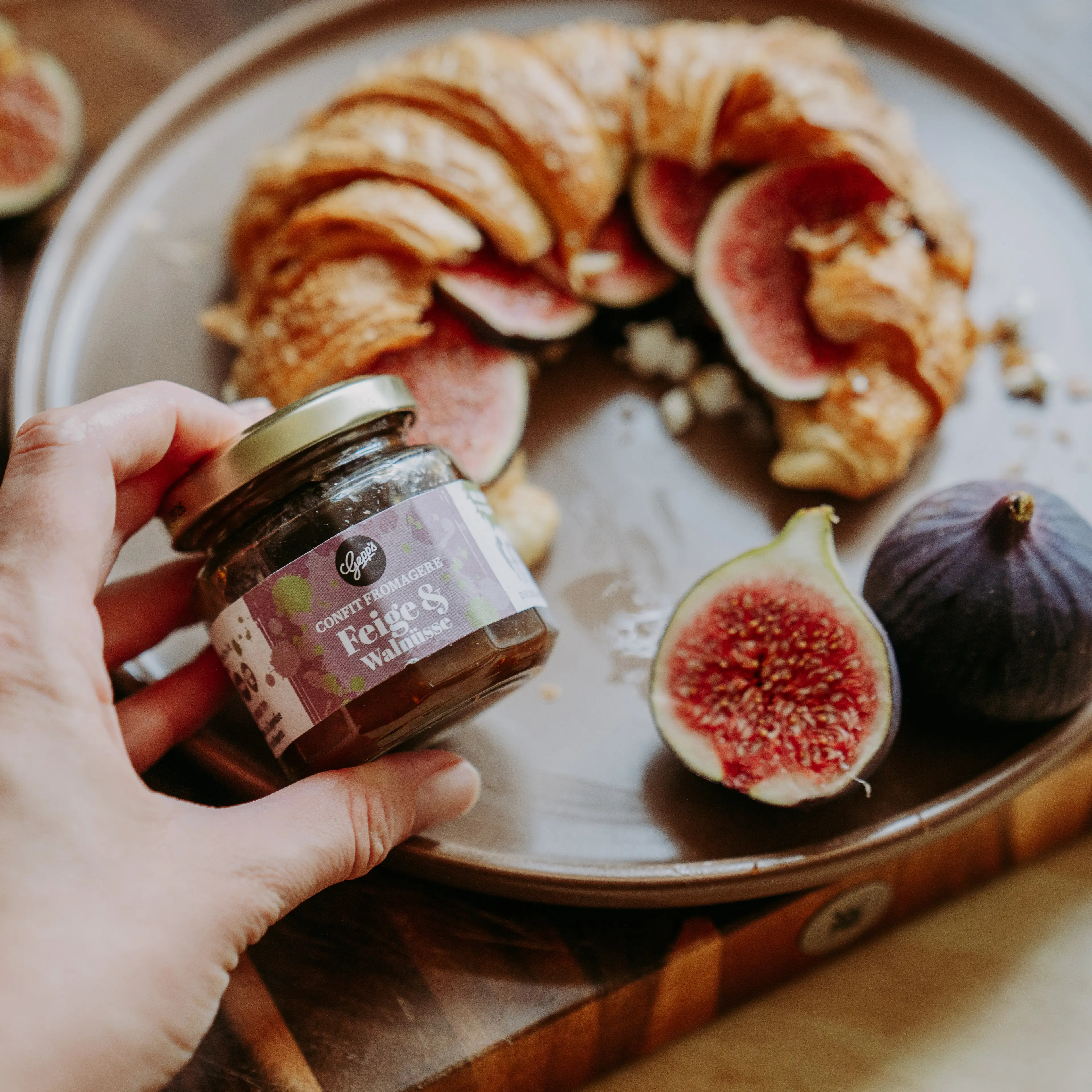Sonntagsbrötchen Backmischung (500 g), Mini Rhabarber Himbeer Fruchtaufstrich (45 g), Mini-Confit Feige & Walnuss (50 g), Mini-Confit Aprikose & Thymian (50 g)
