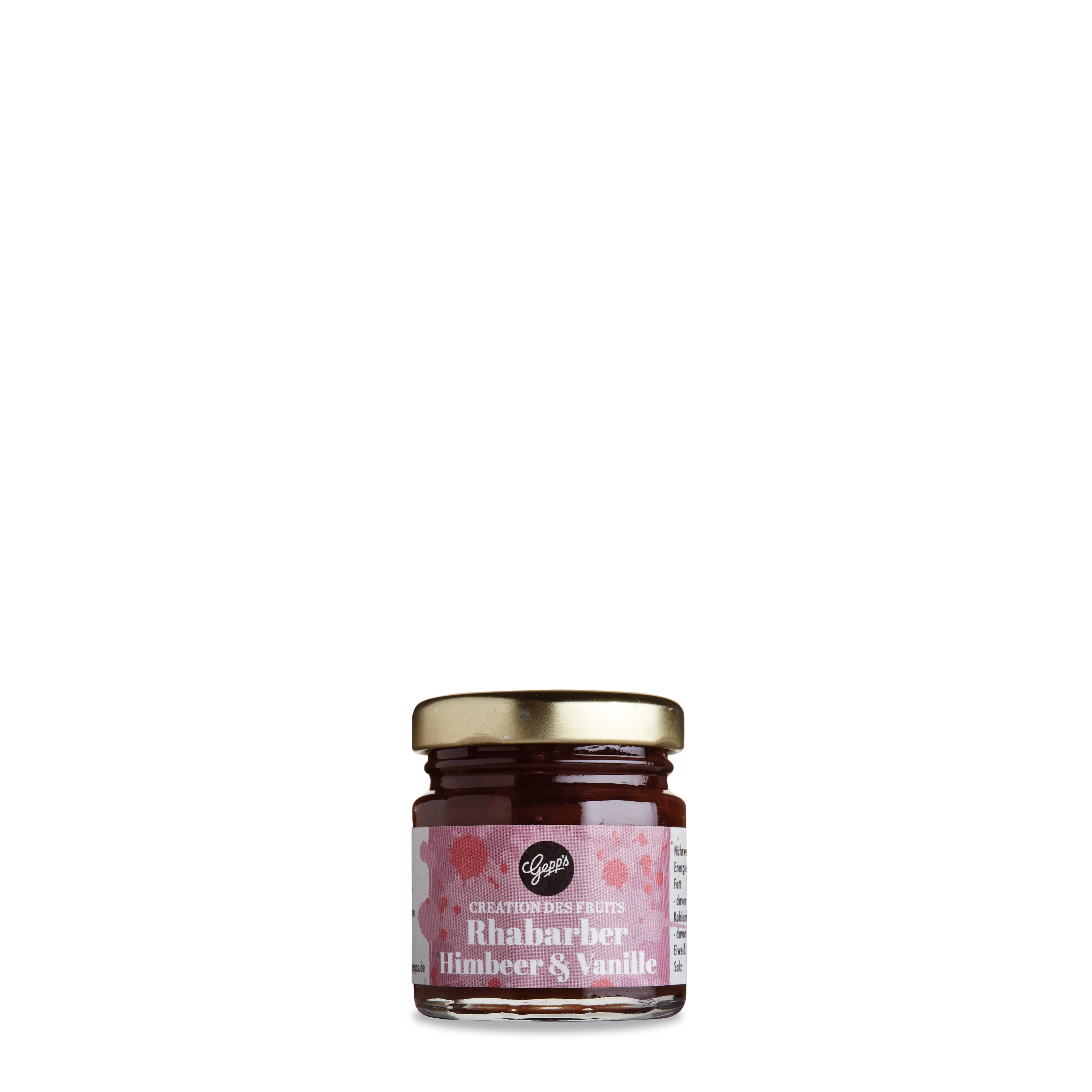 in einer Konfitüre. Wir haben den Rhabarber mit zwei Zutaten kombiniert, die die die herbe Säure perfekt ergänzen und ausbalancieren: Himbeeren und Vanille. Die sommerliche, milde Süße der Himbeere und die Weichheit der Vanille ergeben mit dem herben Charakter des Rhabarbers eine perfekte Kombination! Ob aufs Brot, zum Croissant oder einfach so auf dem Löffel. Eine verführerisch-fruchtige Mischung aus Säure und Süße. Ein Traum aus Frucht.