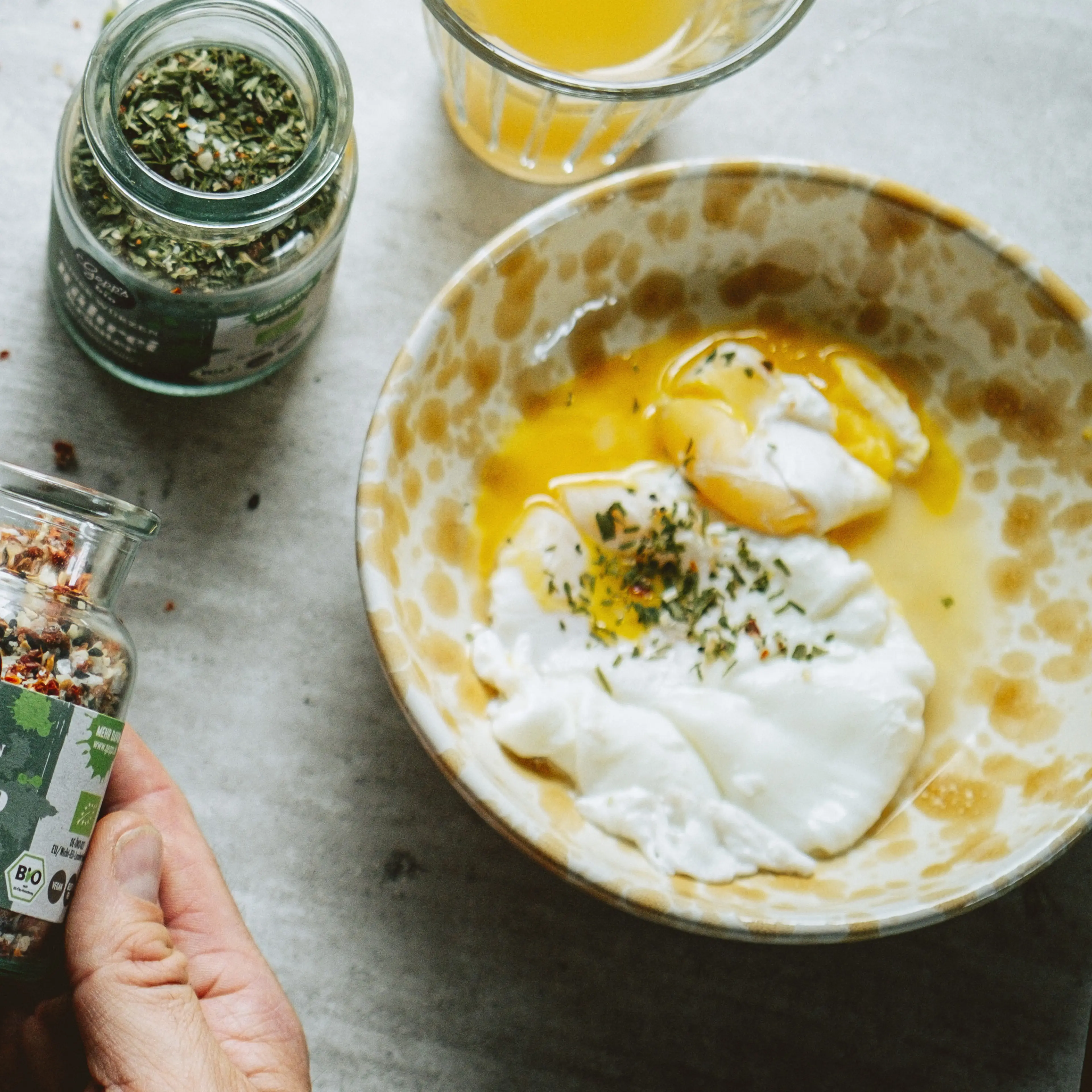 Mini Bio-Tomate Basilikum Pastagewürz (8 g), Mini Bio-Rührei Kräuter (6 g), Mini-Aufstrich Kokos & Passionsfrucht (50 g)