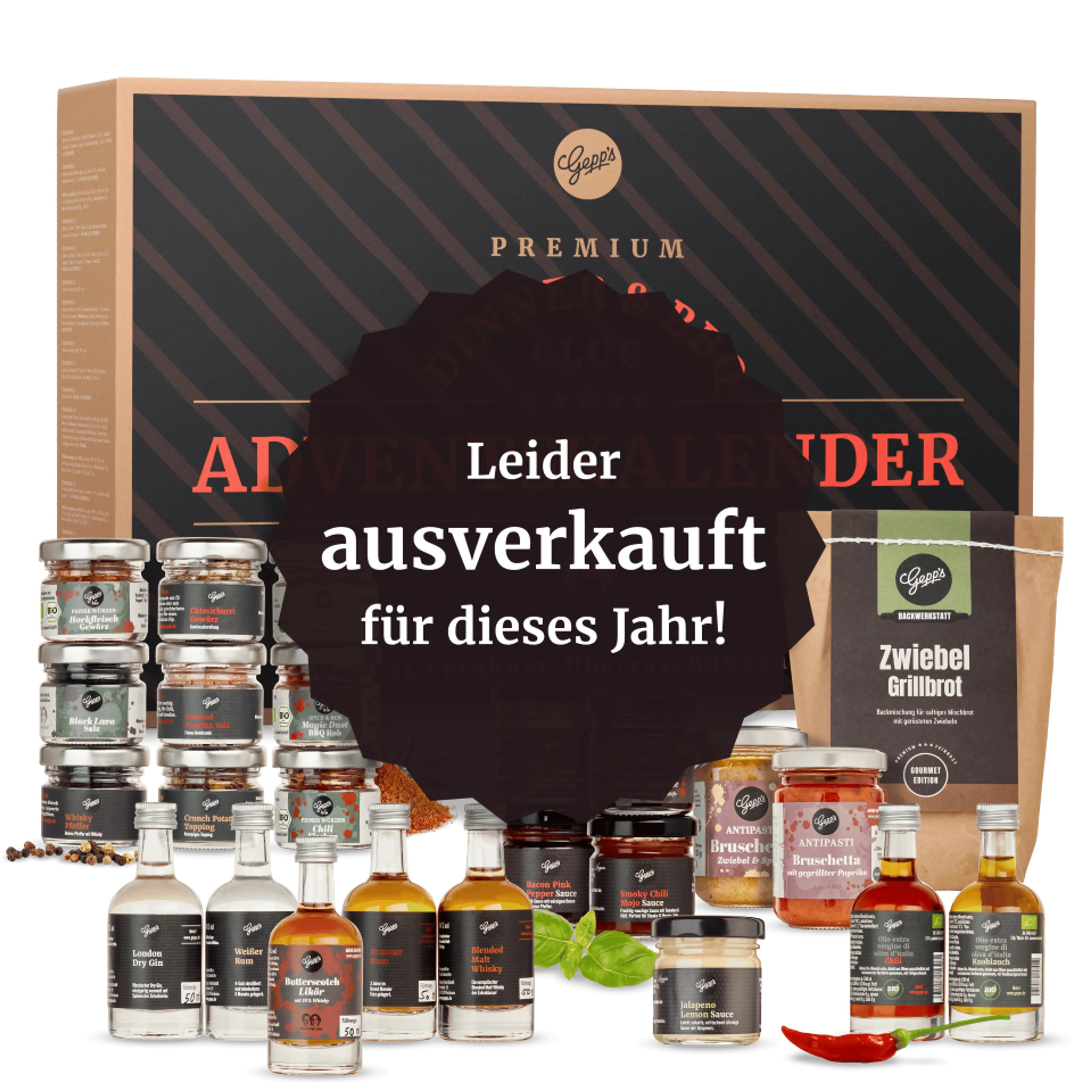 Wenn du morgens schon ans Abendessen denkst und dein Grill auch im Winter nicht kalt bleibt, dann ist dieser Adventskalender wie für dich gemacht. Der Dinner & BBQ-Club Adventskalender bringt dir 24 Tage lang kräftige Aromen, würzige Überraschungen und feine Tropfen direkt in die Küche – oder an den Grill. Freu dich auf rauchige Rubs, scharfe Jalapeño-Lemon-Sauce, würzige Bruschetta mit Speck und Zwiebeln oder ein Crunch Potato Topping, das jede Beilage zum Star macht. Dazu gibt’s edle Begleiter wie Whisky, Rum oder Butterscotch-Likör mit einem Hauch von Feuer. Und als krönender Abschluss wartet eine Grillbrot-Backmischung, die dein BBQ-Menü perfekt abrundet. Dieser Kalender ist kein zartes Plätzchenparadies, sondern ein Fest für alle, die es deftig, würzig und genussvoll mögen – Tag für Tag, Türchen für Türchen.
