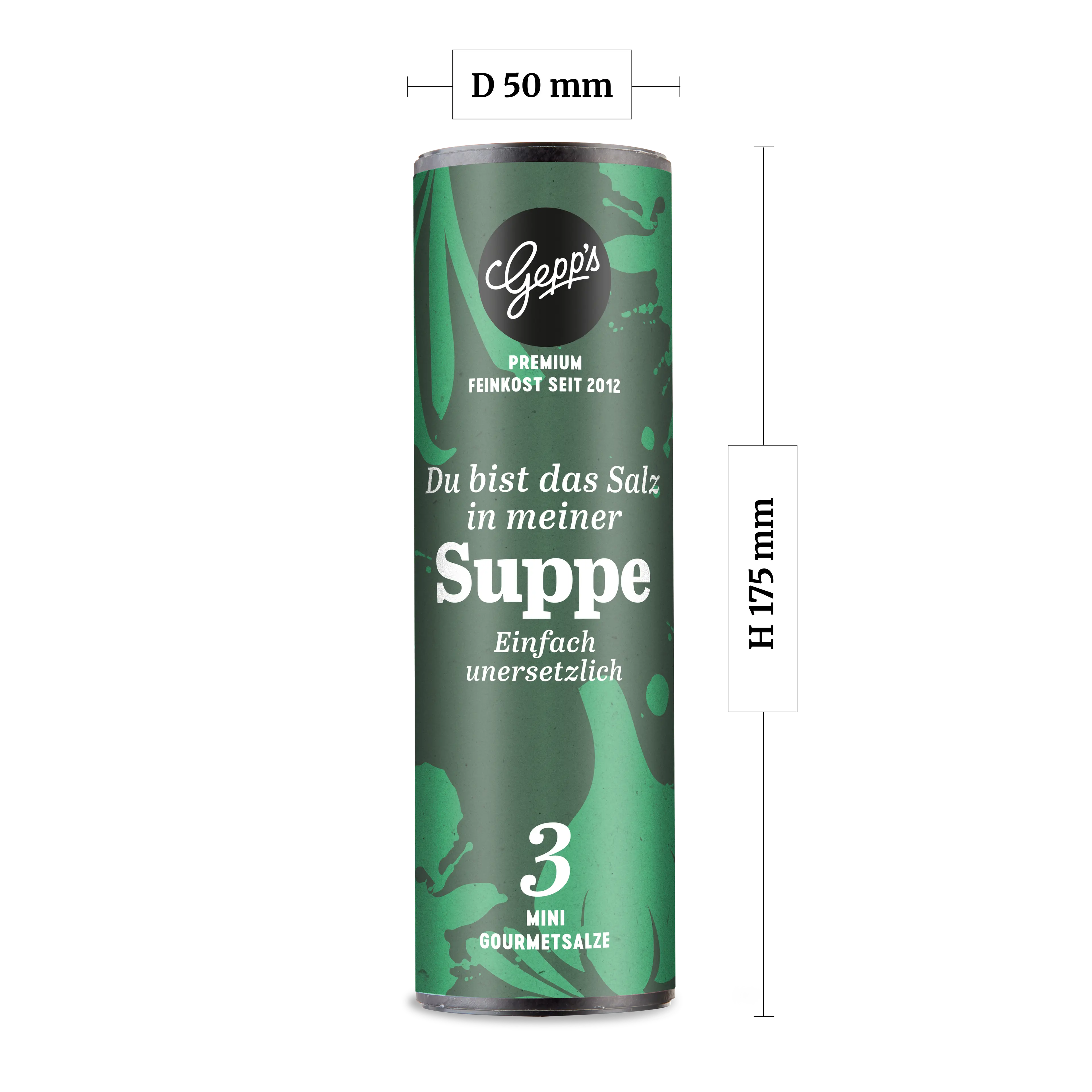 Gibt es eine schönere Liebeserklärung? Einen schöneren Freundschaftsbewies? Salz macht jede Suppe besser, aromatischer, runder. Es gibt den ultimativen Geschmackskick und eine besondere Note ans Essen, wenn es mit natürlichen Aromen wie Zitrone oder Knoblauch verfeinert ist. Mediterrane Kräuter des Bio Kräutersalzes wie Rosmarin, Basilikum, Thymian und Oregano und dazu etwas Knoblauch passen toll zum Tomatensalat oder Tomatenbrot und bringen beim Salzen eine feine Kräuternote an viele Gerichte. Im Set enthalten: Mini Zitronensalz, Mini Knoblauch-Chili-Salz, Mini Bio Kräutersalz