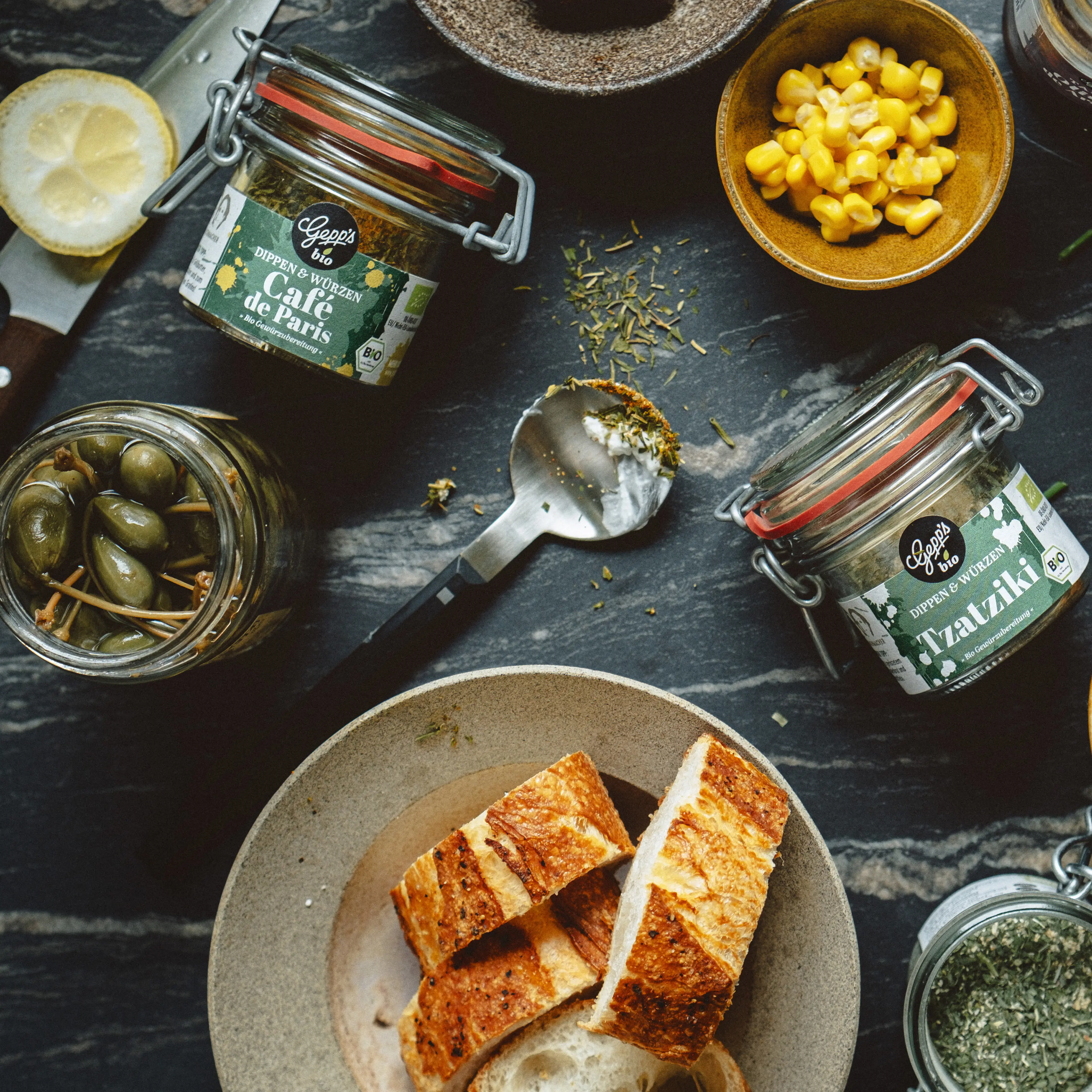 Et voilà … dürfen wir vorstellen: Café de Paris, DIE französische Gewürzmischung. Kreiert wurde Café de Paris in Genf der 1930er Jahre von der Tochter eines Restaurantbesitzers. Schnell war klar, für was sich Café de Paris am besten eignet – als zartschmelzende Kräuterbutter, die Café de Paris-Butter, bringt diese Gewürzmischung etwa ein Entrecôte oder ein Filet perfekt zur Geltung. Und mit Sahne verfeinert ist sie als warme Café de Paris Sauce zu Fisch eine wahre Offenbarung.Typisch französisch folgt unser Café de Paris Gewürz dem klassischen Rezept mit Zutaten wie Kurkuma, Koriander und Chili. Alle Kräuter stammen aus kontrolliert biologischem Anbau. Als Café die Paris-Dip mischst du die Gewürzmischung einfach mit Wasser, Frischkäse und Schmand oder Sauerrahm. Café de Paris ist auch ideal zur Herstellung gleichnamiger Grillbutter bzw. Sauce oder köstlichen Marinade für Fleisch und Fisch sowie tolle Würze für Gratins und Mayonnaisen.