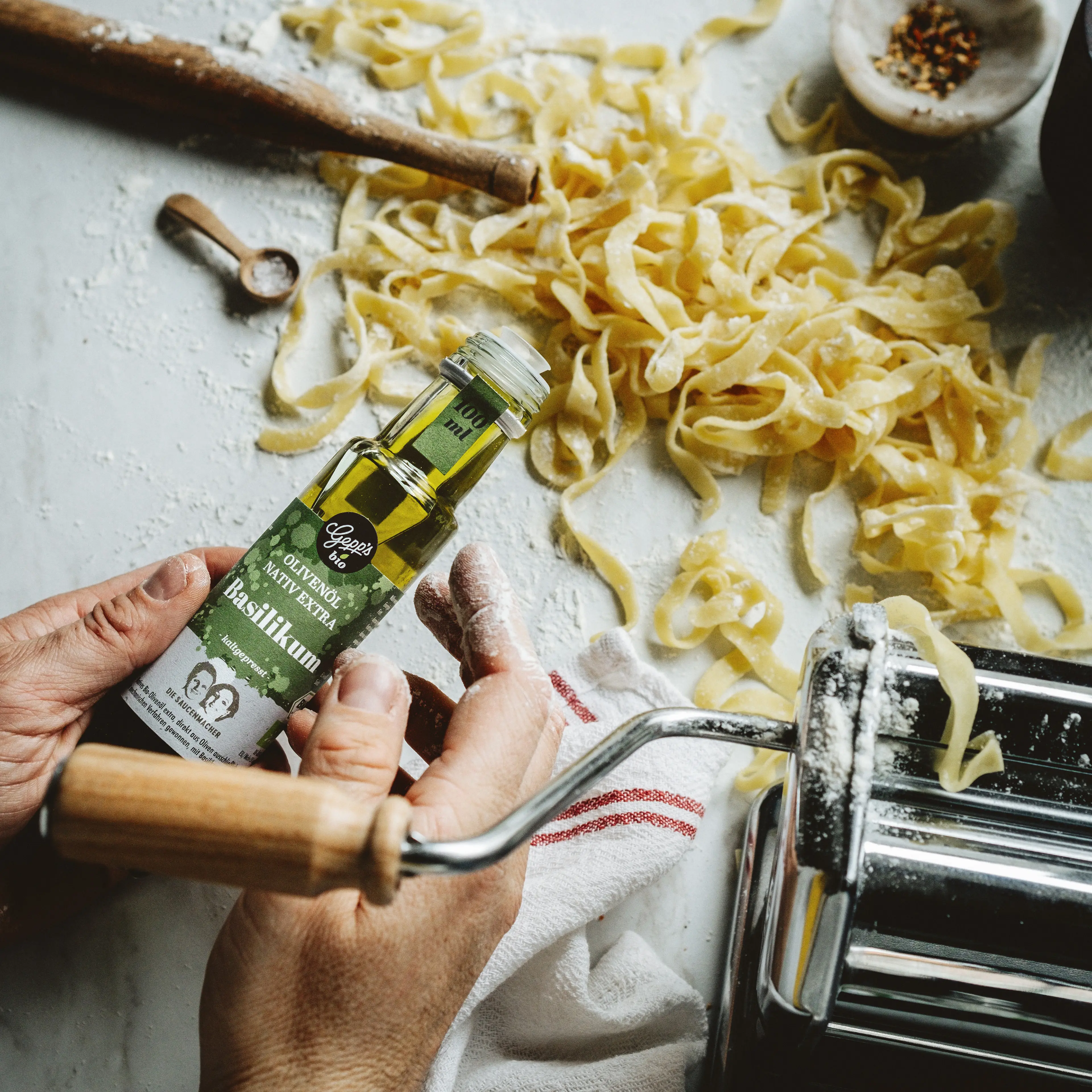 - Mit aromatischem Olivenöl, fruchtigem Himbeeressig & Zitronensalz