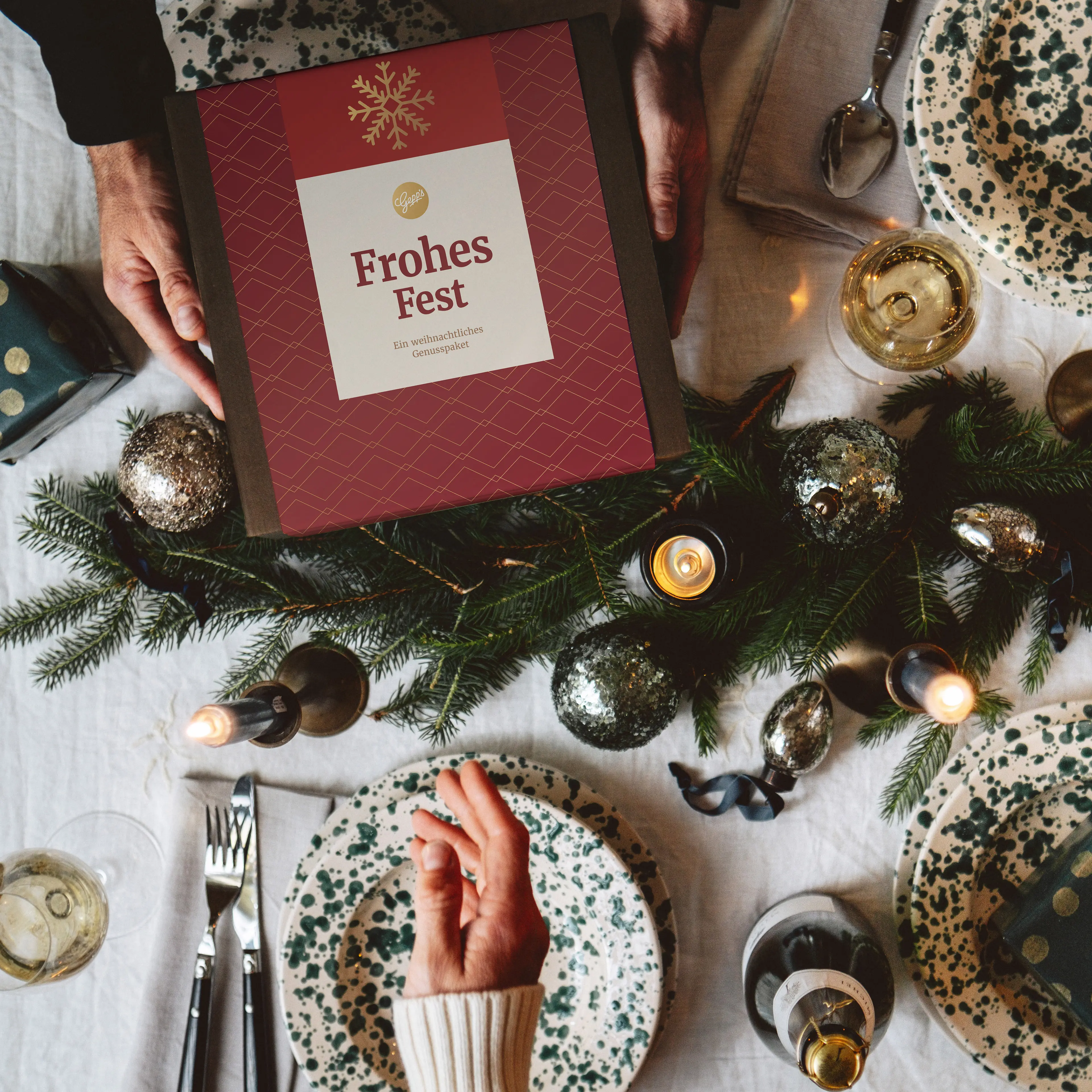 Die Geschenkbox „Frohes Fest“ ist auch mit eigenem Design & Logo möglich. Gerne versenden wir auch an Ihre Wunschadresse und erstellen Ihnen ein auf Maß zugeschnittenes Angebot.