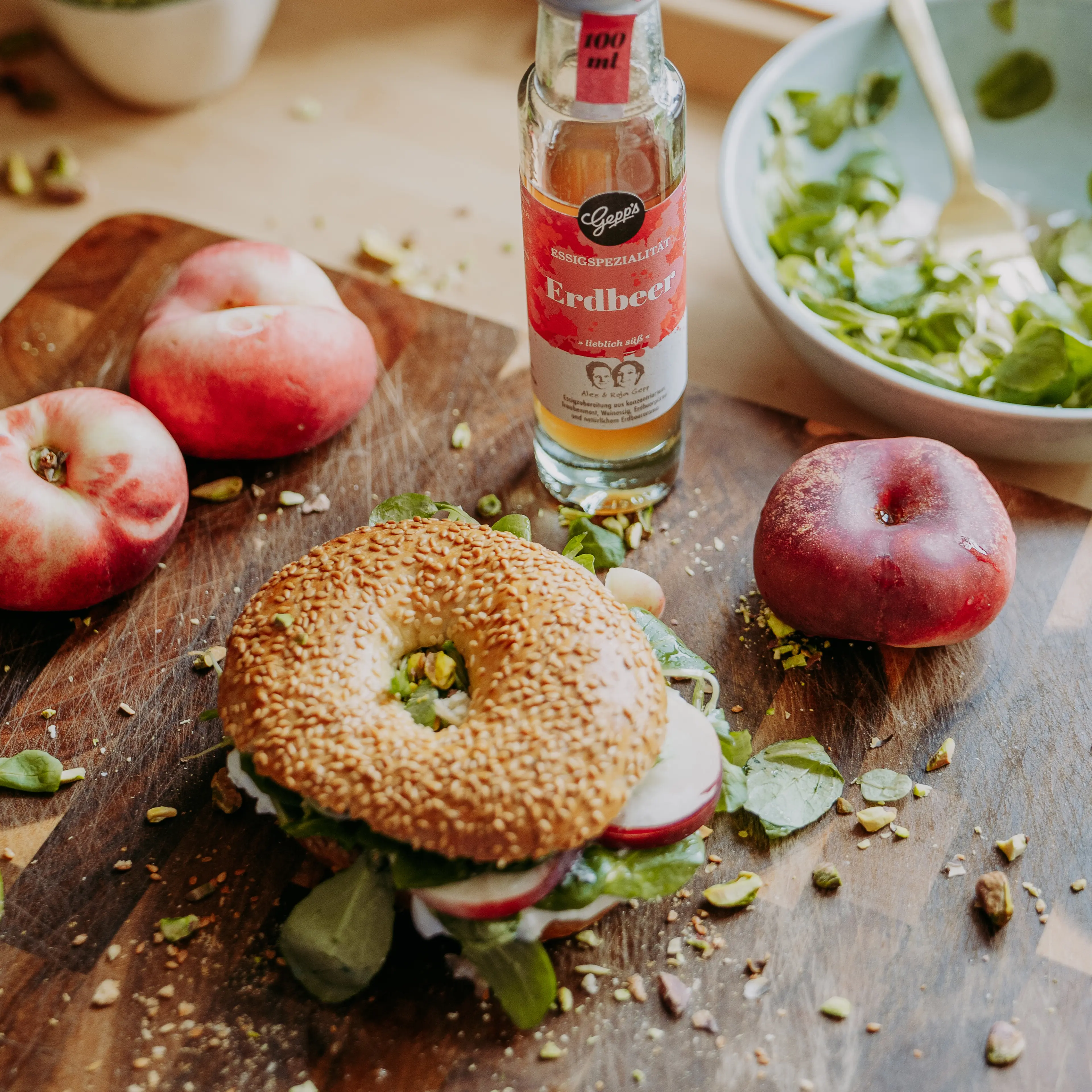 - Olivenöl mit Basilikum und Essigspezialität Erdbeere