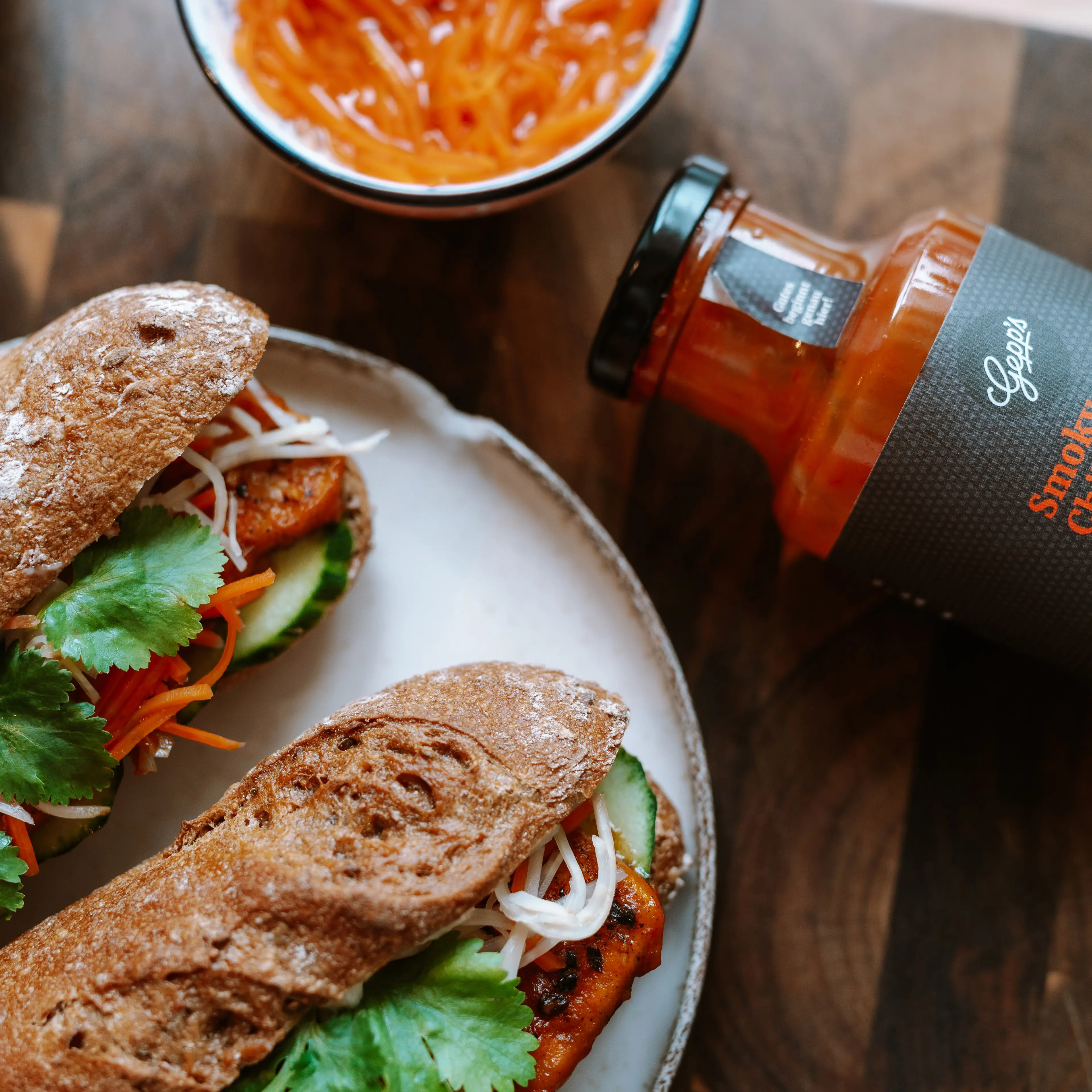 Geliermittel: Pektin), Maisstärke, Zuckerrübensirup, Salz, Raucharoma, Chili 0,6 %, Paprika Flakes, Zwiebelgranulat, Paprikapulver geräuchert (Paprika, Rauch), Knoblauchgranulat, Verdickungsmittel: Xanthan; Gewürze.